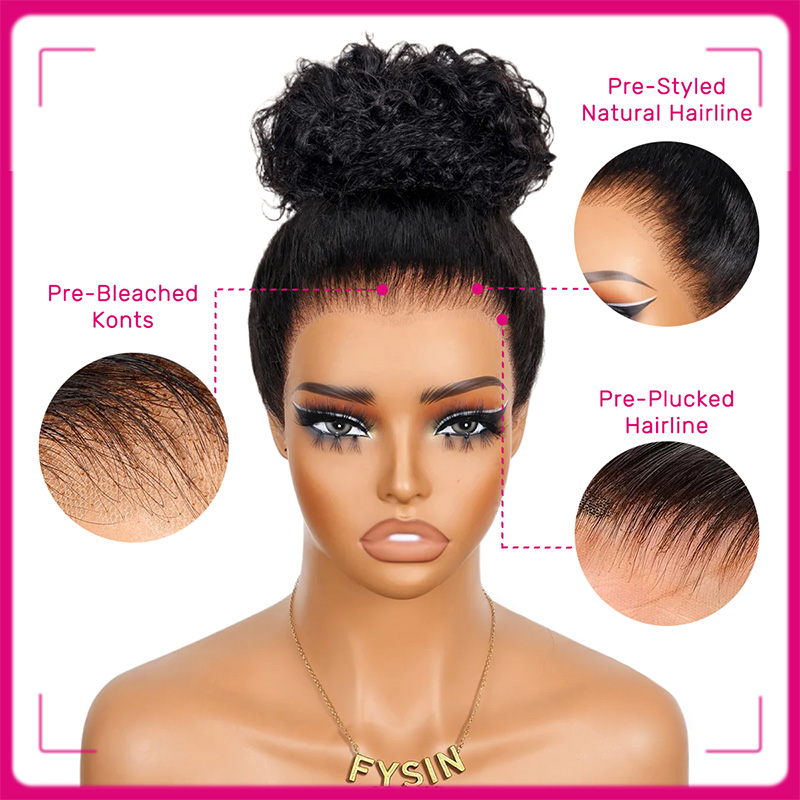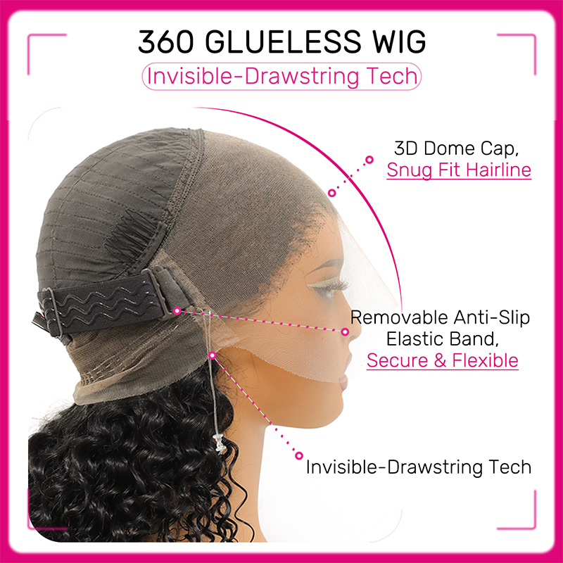 4C Curly 360 Lace Front Wig Glueless with Invisi-String Snug Fit Pre-Bleached Knots and Curly Baby Hair