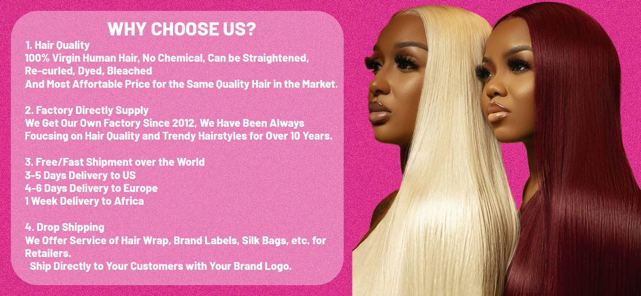 Quality100% Virgin Hair, No Chemical, No Tangle, No Shed, Can Be Straightened, Curled, Dyed, Bleached.